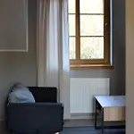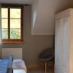 De är inredda med parkettgolv. Du kan njuta av utsikt över trädgården från rummen. I denna lägenhet finns separat toalett och dusch.